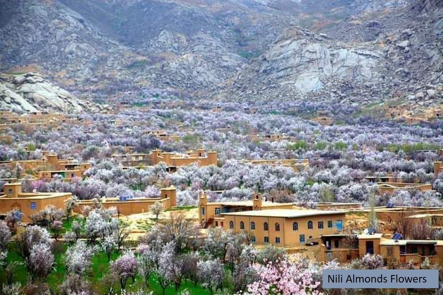 Almond plant flowers open at the beginning of spring. Some provinces of Afghanistan have their own traditional festivals during the almond blossom season. The people and farmers show their interest in growing almond plants and start new seasons by enjoying almond blossoms everywhere around the region.