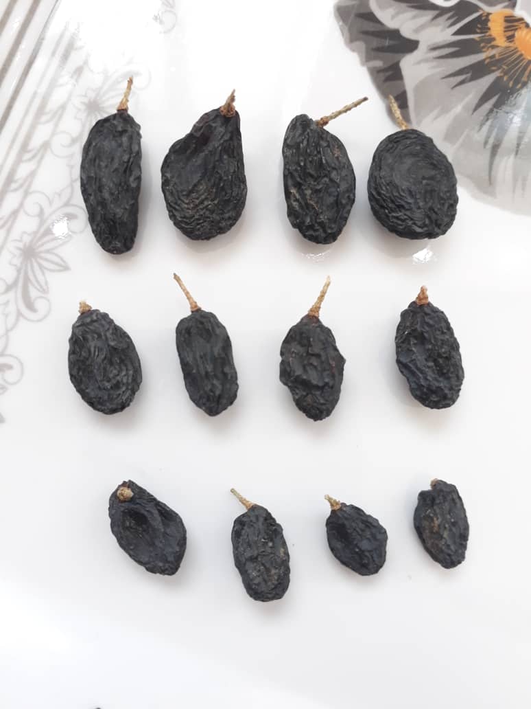 Shadow-dried black raisins have more moisture and elasticity than sun-dried black raisins. Both shadow-dried and sun-dried black raisins are dried without any preservation. Sun-dried black raisins take 7 to 14 days to dry, while shadow-dried black raisins take 40 to 50 days, depending on the region’s summer days and temperature..